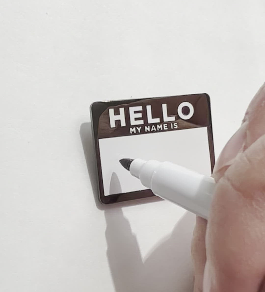 Who needs wasteful name tag stickers when our enamel pin has its very own dry erase board!