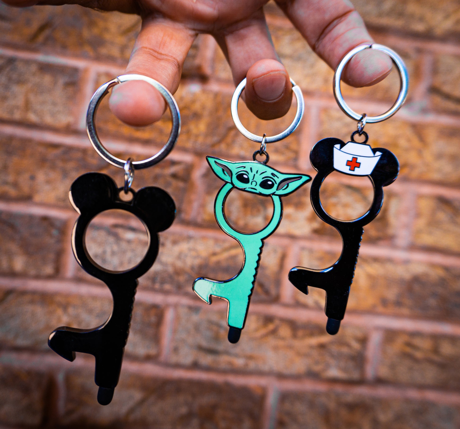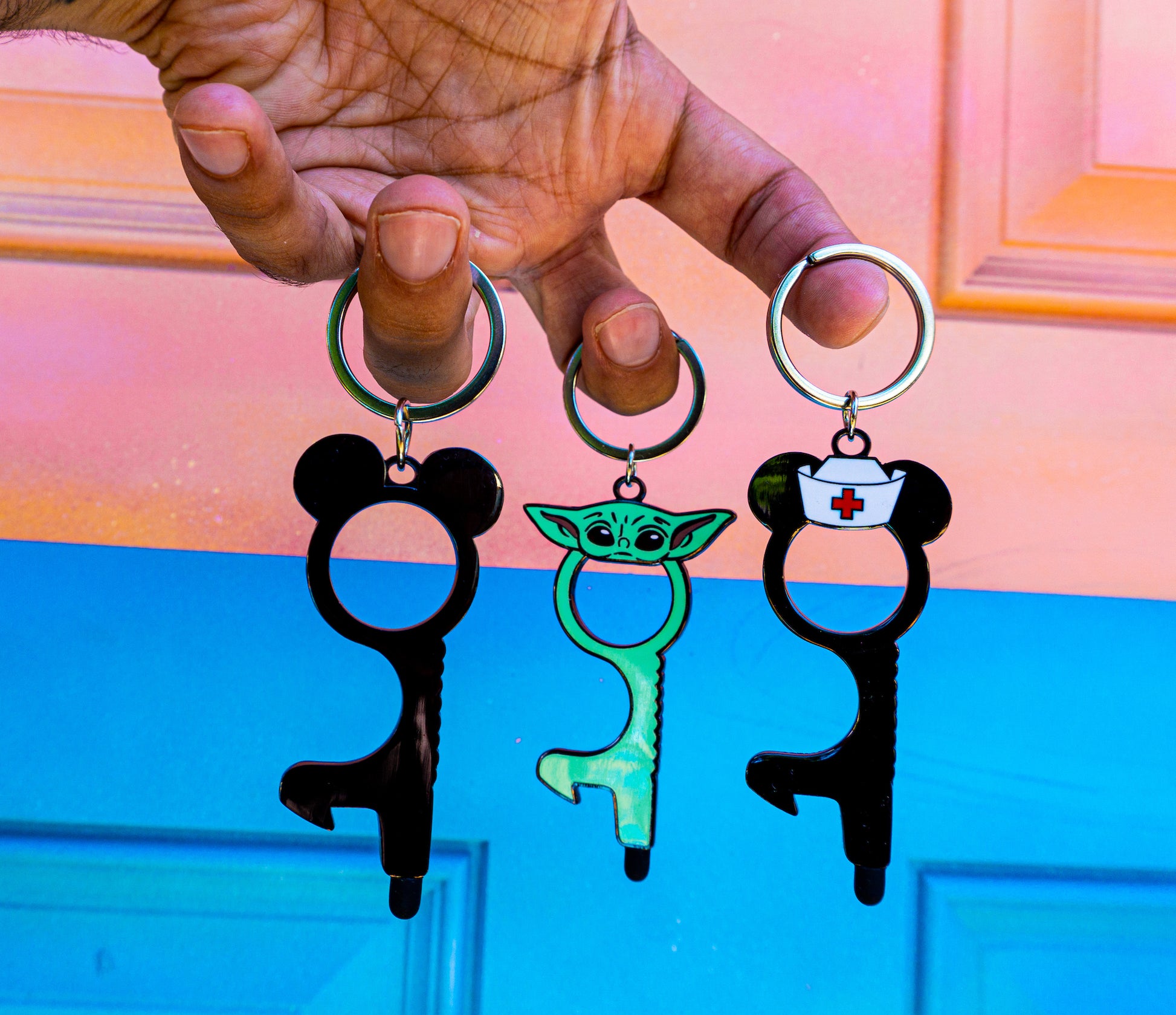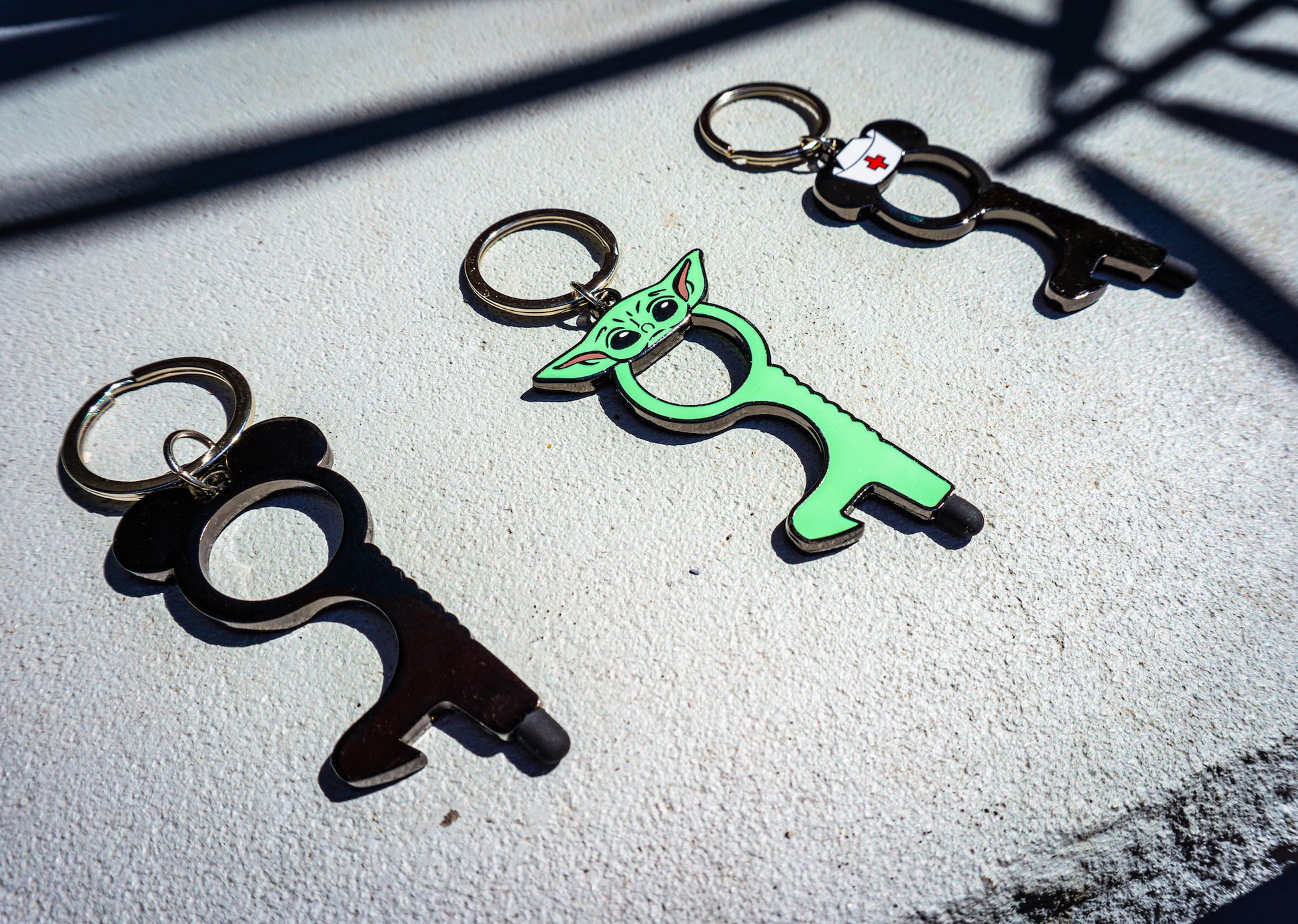 Multi-functional No Touch Door keychain to open doors, Sign your name at Checkout, Use on Iphone, use on keypads at register checkouts, Glove Remover, bank ATM's, bathroom doors and more.
